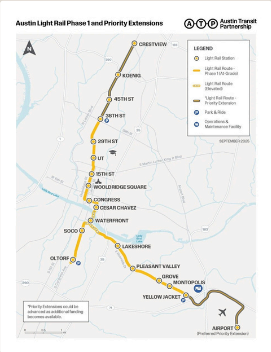 ✅ Austin Light Rail Federal Approval - $7.1-8.2 billion project green lit; construction starts 2027, delivery 2033; opens door for federal grants covering ~49% of costs